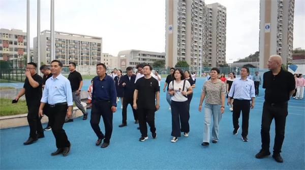 在赣州市文清外国语学校,董事长刘钦辉,学校党总支书记、副校长吴中鸿,小学部校长方鸣凌,陪同引领河南考察团一行参观学校各类特色体育场馆和党建活动阵地等。